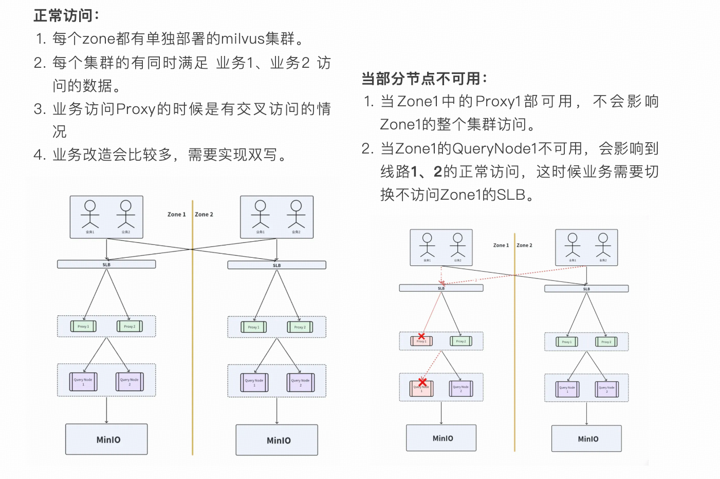 随着业务关键性持续提升,Milvus 对应的 SLA 变得越来越重要。在此背景下,构建完善的 Milvus 高可用架构与灾备体系已成为系统设计的核心考量要素。比如:主从、多 zone 部署,Proxy 高可用,Minio 高可用,一个 zone 完全挂了怎么办等问题?