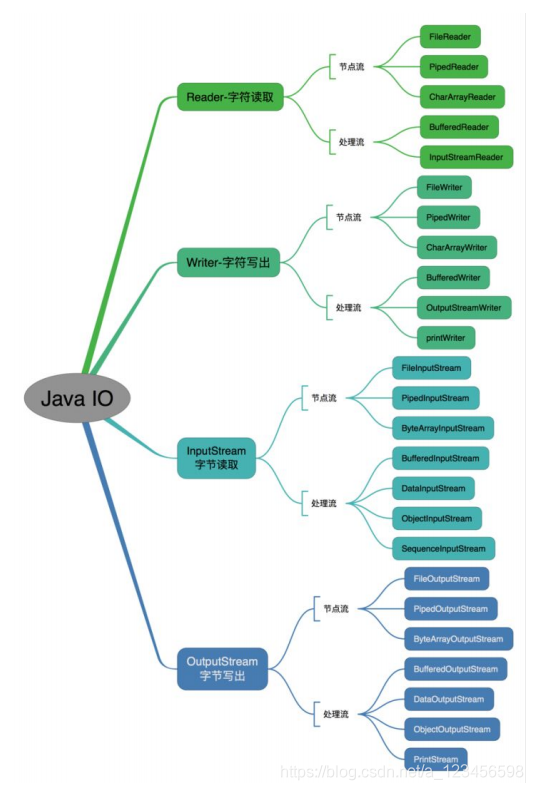 按照流的角色:节点流、处理流。(目标设备中的类>>节点流>>处理流)