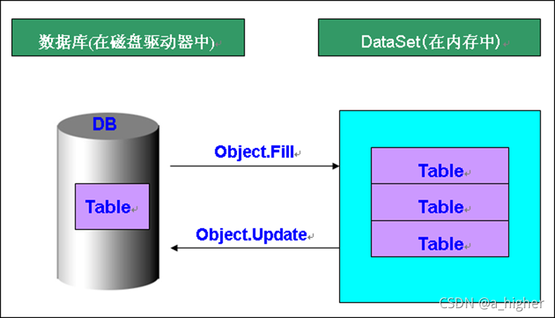 OracleConnection(connStr) conn、 OracleCommand(sql, conn) cmd、cmd.Parameters.Add,OracleDataAdapter() da、da.SelectCommand(还有insertComand等) = cmd、da.Fill(ds)、DataSet ds