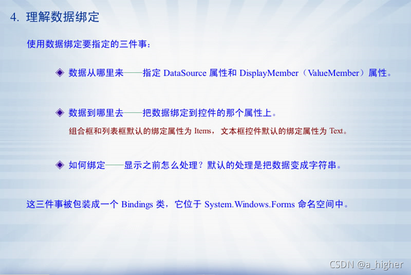 窗体:初学者就是知道拖动那些什么textbox、label,学会怎么得到值,怎么赋值,这些组件有哪些属性和事件,这些后面工程时候用就好啦,一下也记不住