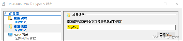 点击上图右边 hyper-v设定,可以更换虚拟机和虚拟机硬盘位置设定。不需要的可以不用设置。