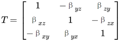 【传感器】一种鲁棒的imu比例系数与偏移的校准算法 以上的代价函数是有加法的,运用最小二乘法来估计参数比较困难,因此使用 LM 算法来进行非线性估计,具体 LM 算法的原理与实现,参考主页中的上一篇文章《LM迭代估计法》,其与标准正交坐标系有一定的偏移,将各轴的偏移记作 β,之后建立误差模型,建立代价函数,进而求解估计参数。其中,T 为旋转矩阵,W(O) 表示陀螺仪的正交标准轴,与 AOF 重合,W(S) 是当前的陀螺仪轴。此方程中,含有 9 个未知量,三轴的轴偏移,三轴的比例系数,三轴的零偏。,理想的三轴坐标系,加速度计的理想坐标系可以记作 AOF,