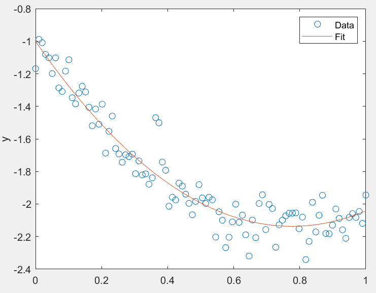 【Matlab】LM迭代估计法 其中 y(i) 为第 i 组数据的真实值或理论真实值,fi(θ) 为第 i 组数据的预测值,目的就是找到一组 θ,使得代价函数达到最小值。7.更改估计参数之后,再次使用 n 组采样数据,重复 6 步骤,如果代价函数值变化小于设定的迭代精度,或达到最大迭代次数,则停止迭代,返回跌代后的参数向量 θ。6.迭代更新参数向量,雅可比矩阵(有一些简单的情况雅可比矩阵只与采样值有关,就可以只计算一次),这里将收敛补偿设置为1,即α = 1。迭代次数为 1000 次,采样 100 组 x,y 数据。