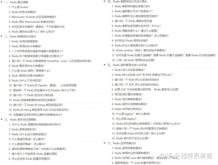 本文档将Redis知识方向分为六大块进行梳理:
