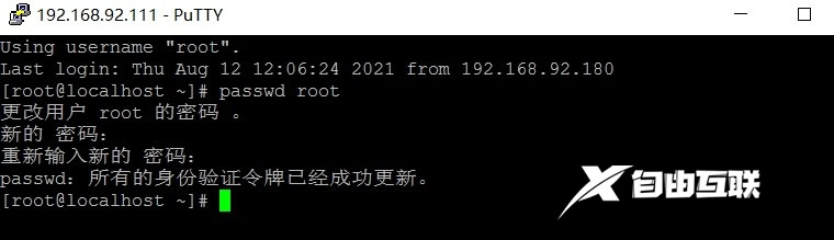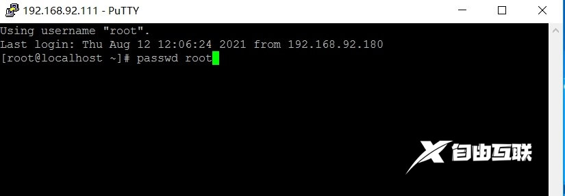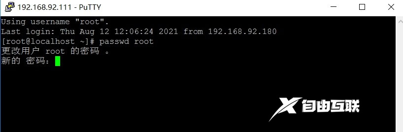 连接上服务器后,输入 passwd root ,其中root表示当前登陆用户