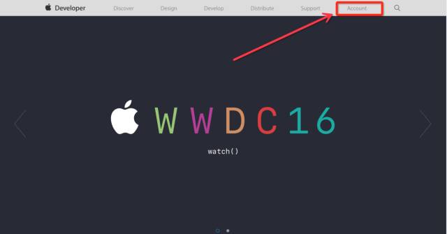 1.打开苹果开发者网,点击“Account”登录会员中心。