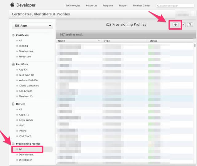 1 找到Provisioning Profiles ,点击All,然后点击右上角 + 号