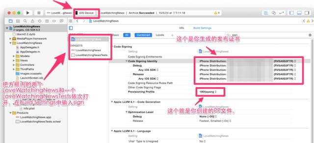 在Xcode中打包工程找到你刚刚下载的发布证书(后缀为.cer)或者p12文件,和PP文件,双击,看起来没反应,但是他们已经加入到你的钥匙串中。如果之前步骤已操作过,可省略此步。