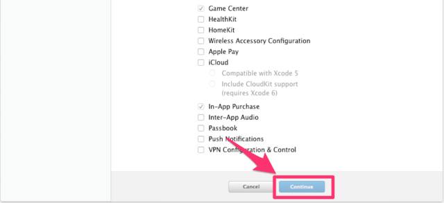 3.在App ID 这个选项栏里面找到你刚刚创建的:App IDs(Bundle ID) 类型的套装,点击Continue