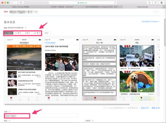 5、依次把不同尺寸的App截图拉入到对应的里面