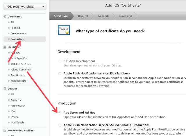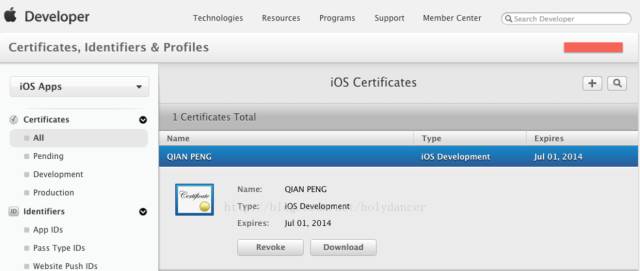 该流程也需要进行两次,分别创建开发用的PP证书和发布的PP证书。