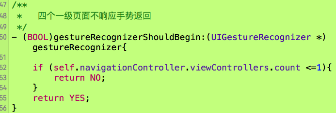 04 实现手势的代理方法设置四个一级页面不响应手势返回