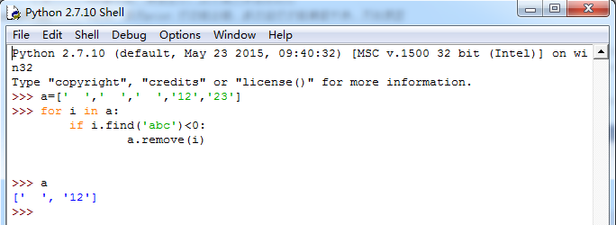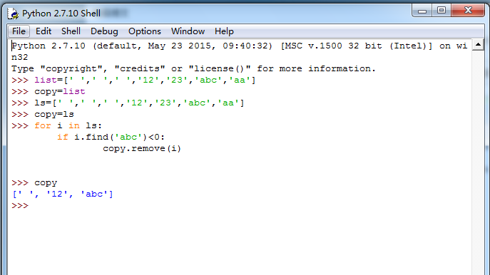 ls=[' ',' ',' ','12','23','abc','aa'] copy=[' ',' ',' ','12','23','abc','aa']