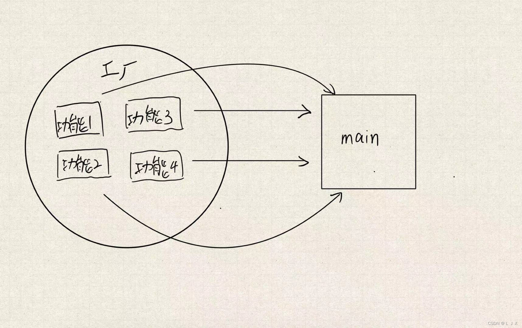 在工厂模式中,把所有的功能代码都写进我们的“工厂”中,再由main函数调用。