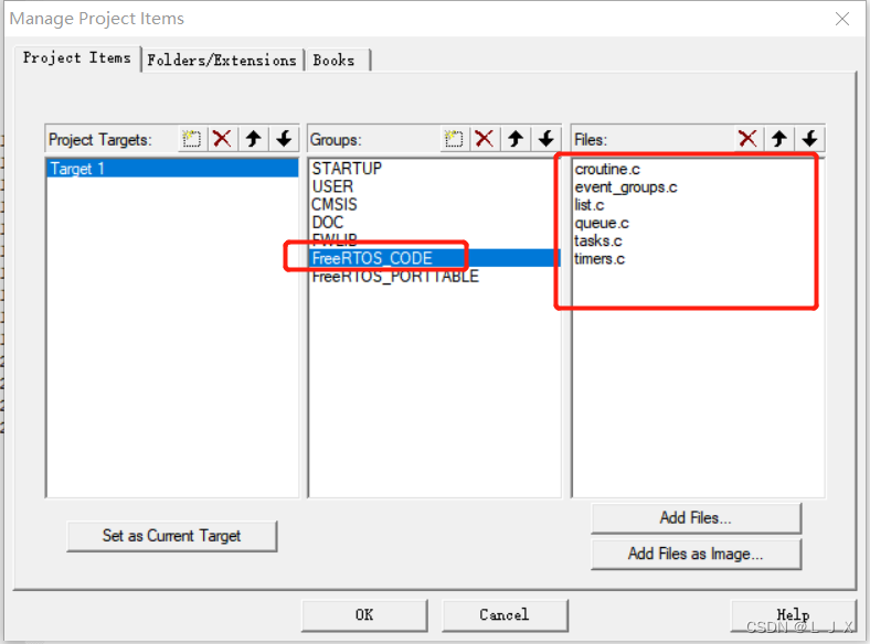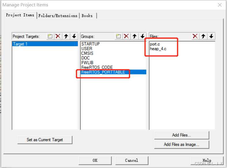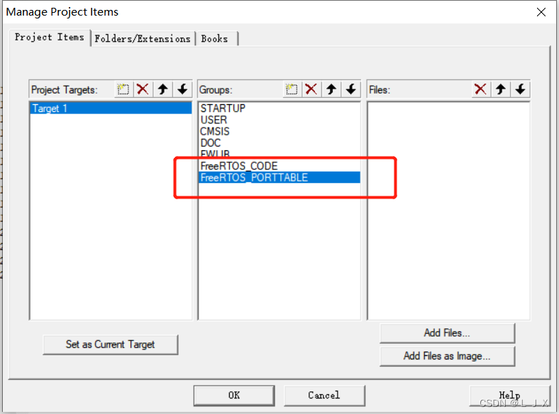 6. 在FreeRTOS_PORRTTABLE目标下添加以下两个文件