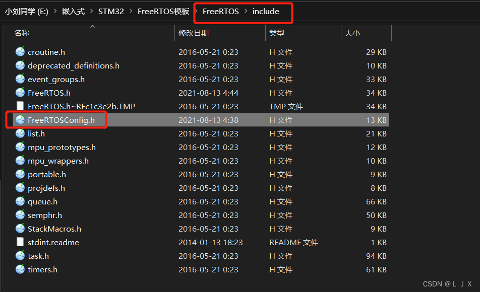 8.将FreeRTOSConfig.h粘贴进FreeRTOS/include路径下