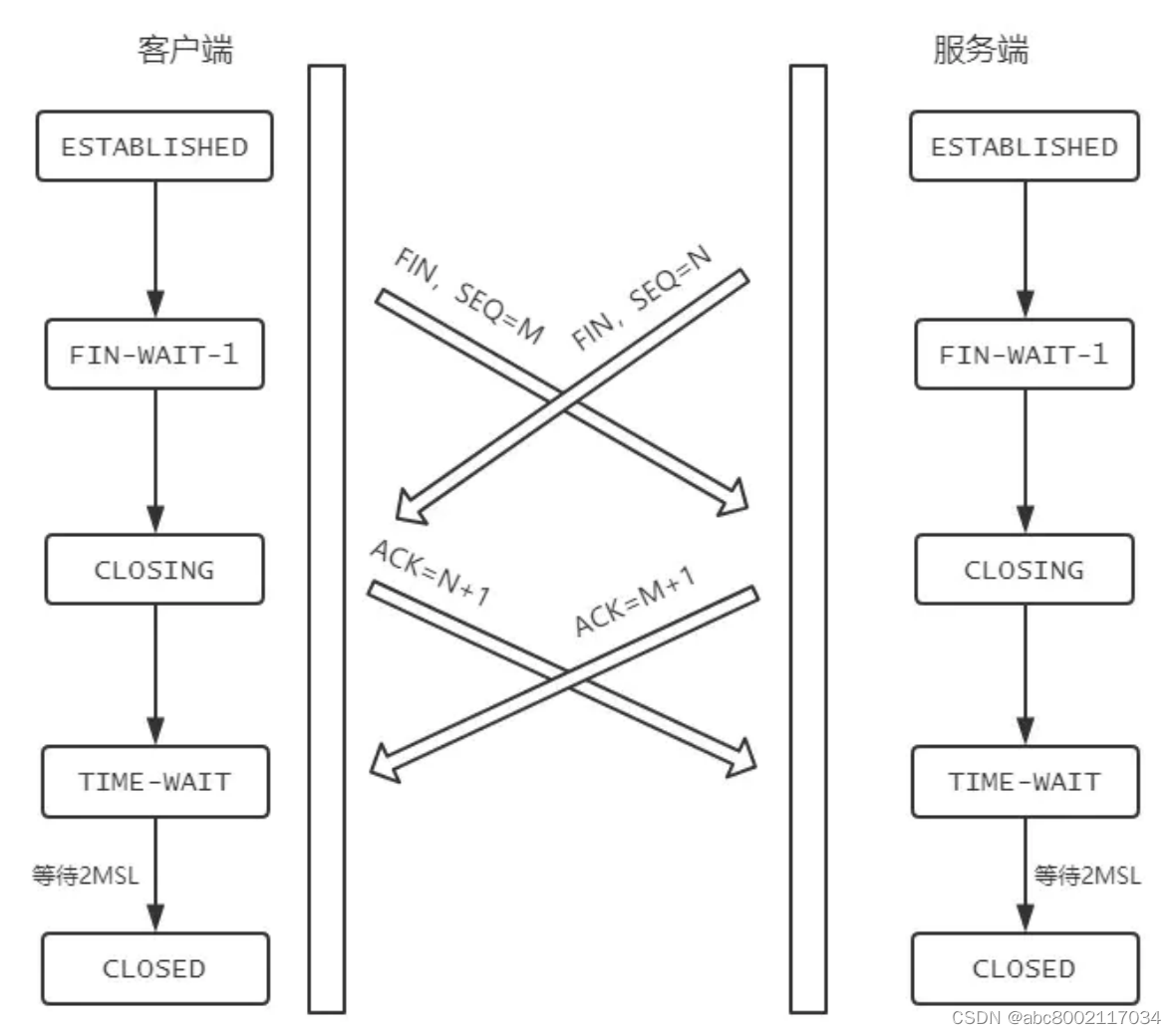 如果客户端和服务端同时发送 FIN ,状态会如何变化?如图所示: