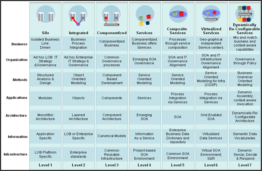 之前的SOA,尽管流程整合也比较灵活,但都是在设计期有开发人员(在业务分析和产品管理的指导下)实现;这个阶段的流程整合是在运行期,有流程分析师用工具实现;或者由系统自己确定;这需要有统一机制发现所需服务。