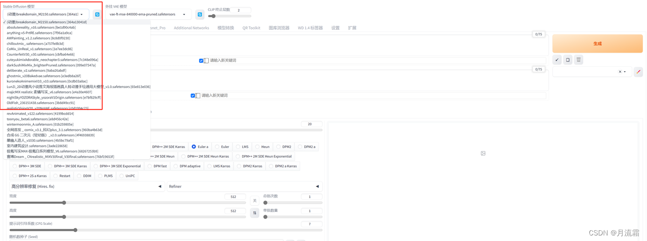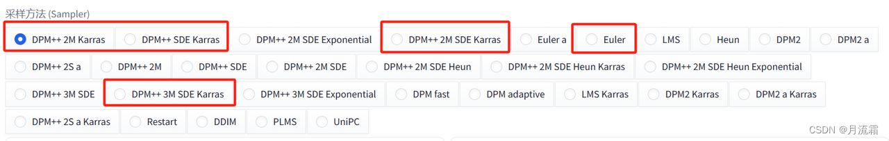 框出来的这几个采样方法,出图速度比较快,而且出来的照片质量也比较高