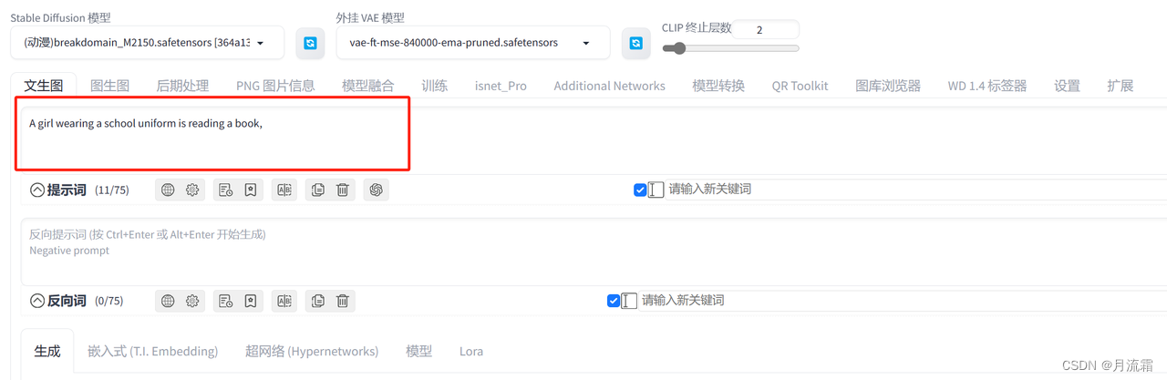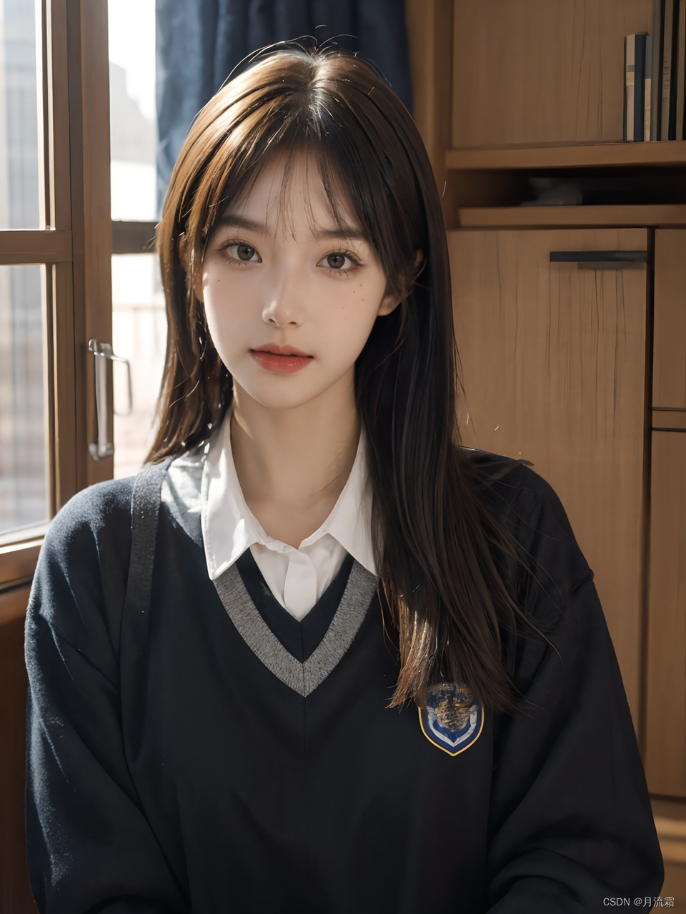 比如说,现在要生成“一个穿着校服的美女在看书”的照片,那这个句子就是我们的关键词