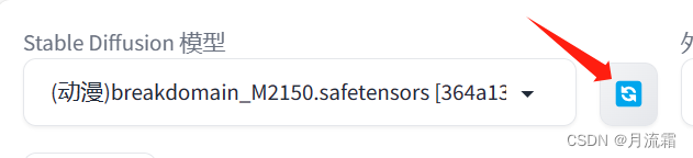 接着我们回到SD,点击旁边这个刷新按钮,这样新安装的大模型就会自动加载上来,我们就可以直接选用了