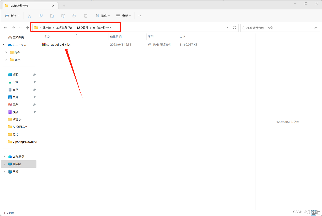 ②打开下载好的文件,解压《01.秋叶整合包》里面的压缩包