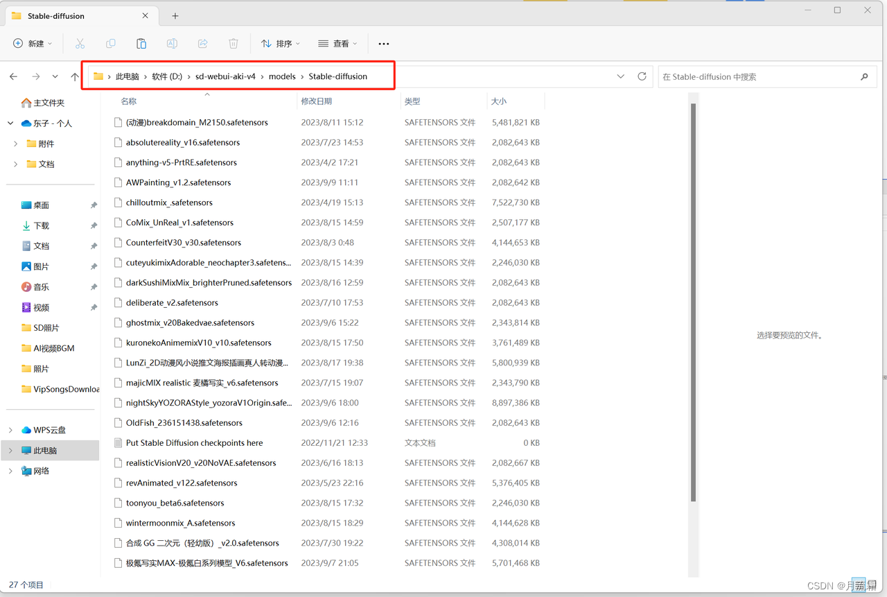 找到models文件夹,把大模型放到models文件夹里的Stable-diffusion文件夹就可以了