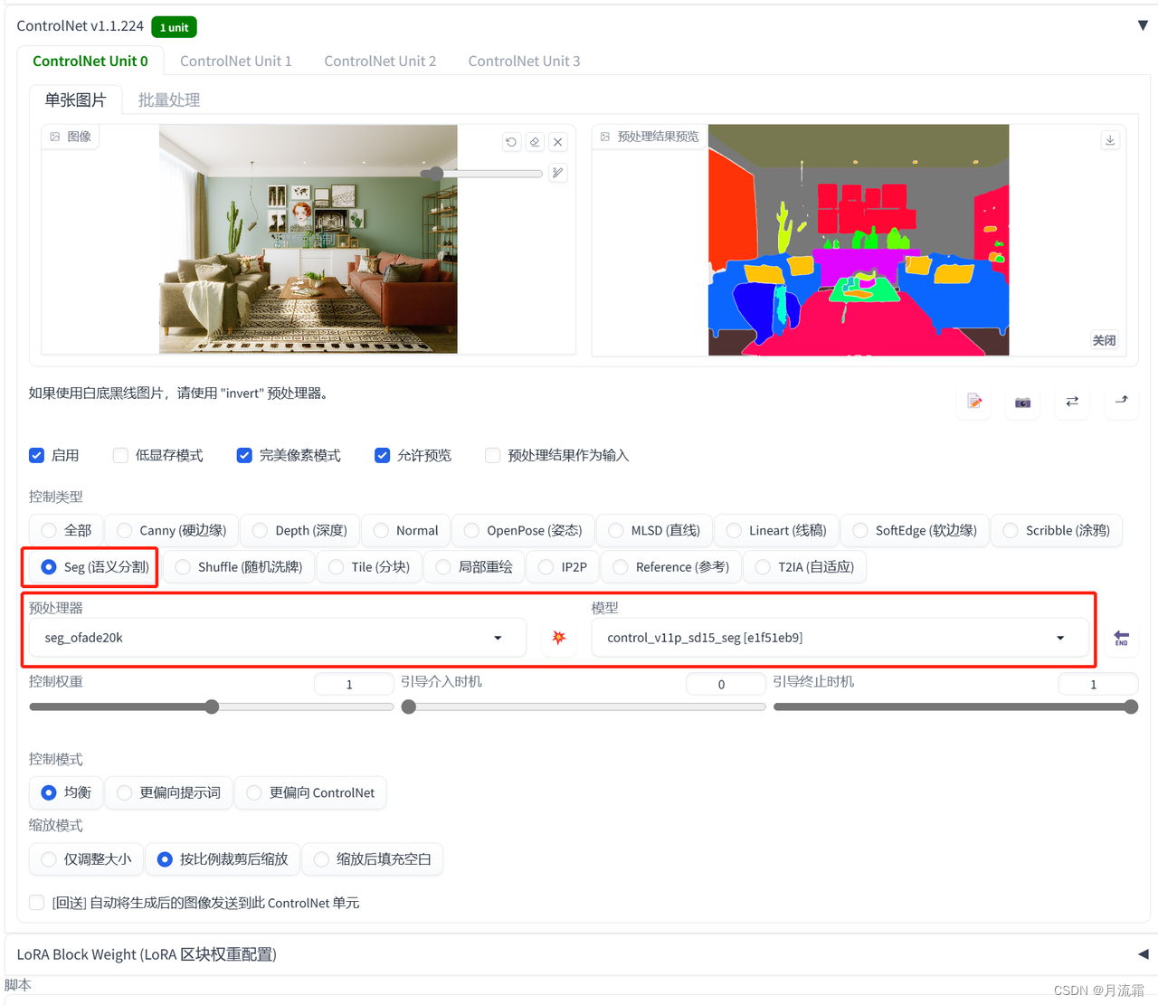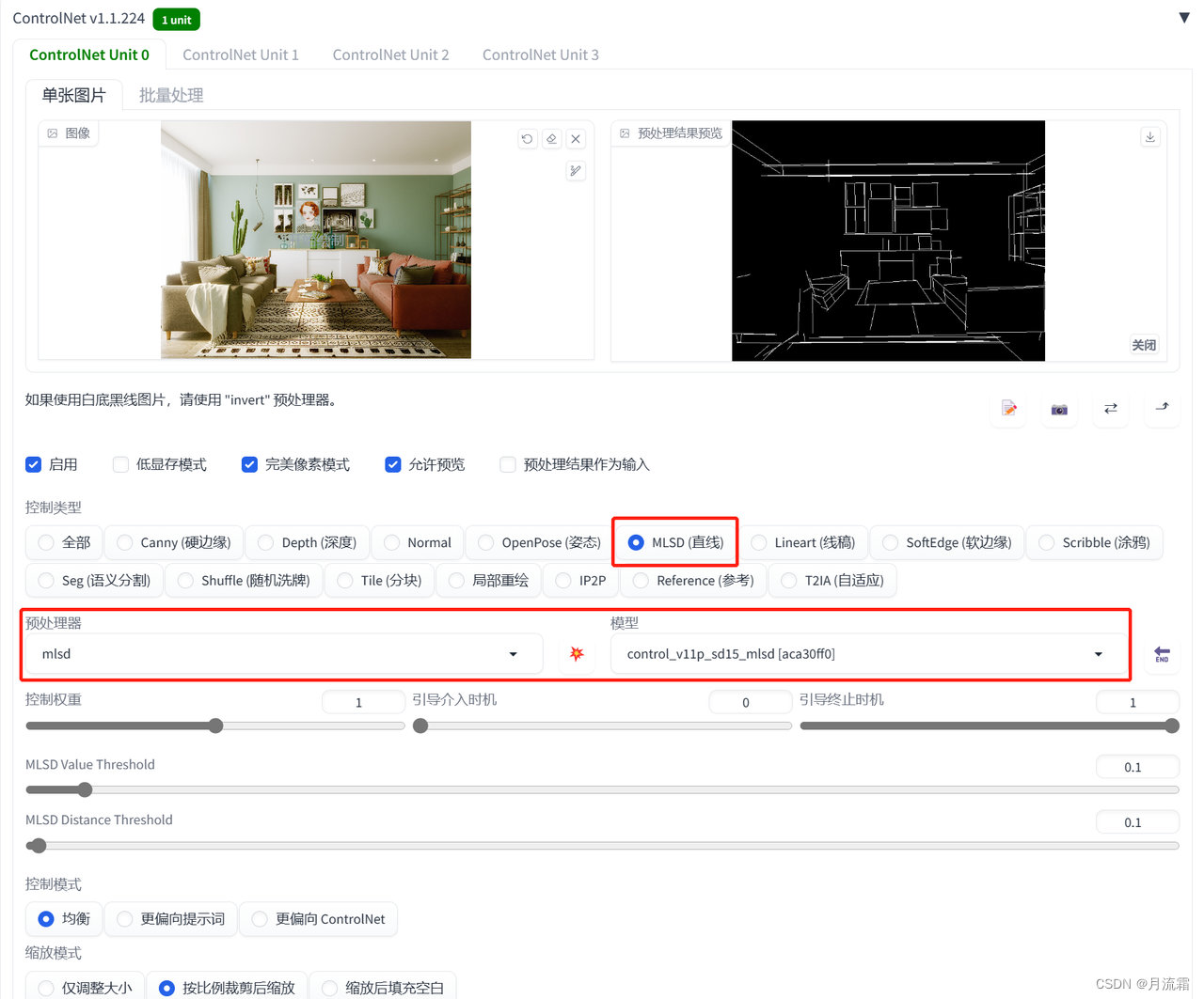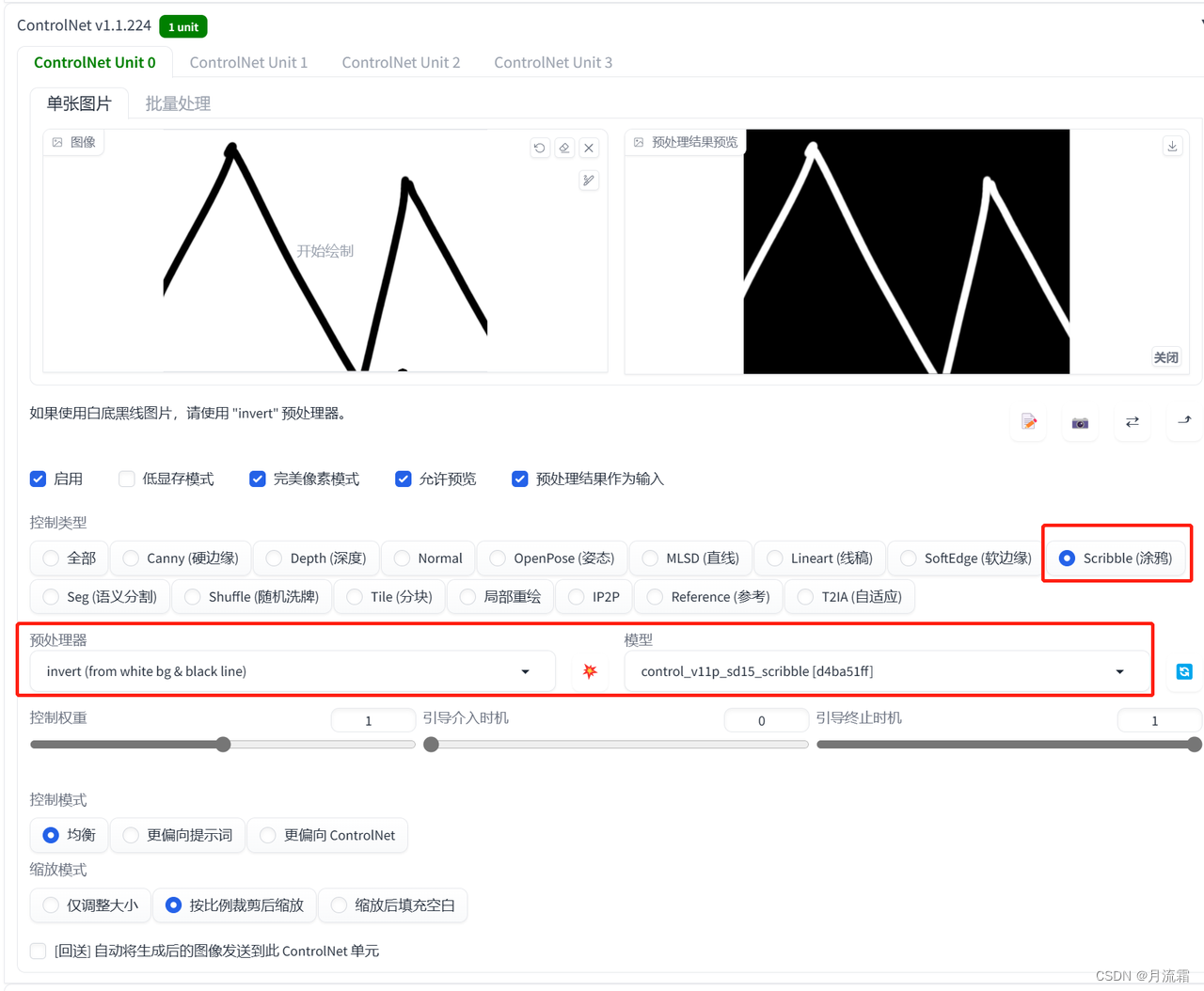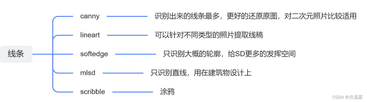 controlnet的不同功能的实现其实就是上传不一样的照片,然后选用不一样的预处理器和模型
