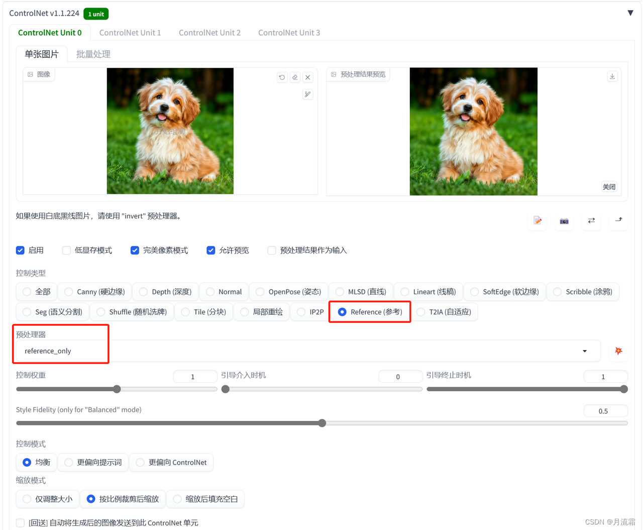 简单来说,预处理器是用来识别我们上传的参考照片的,不同的预处理器识别出来的东西就不一样