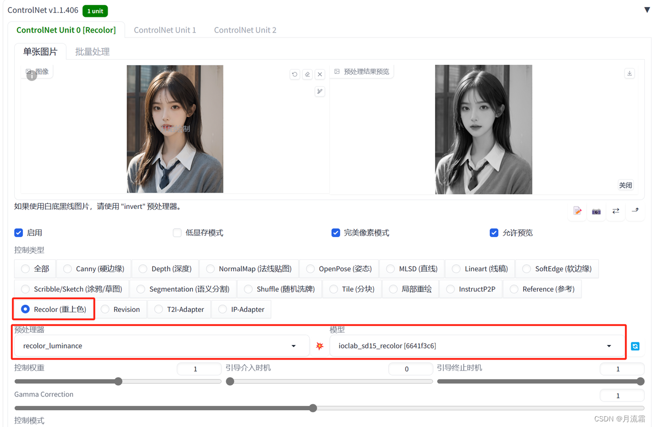 预处理器:recolor_luminance 模型:ioclad_sd15_recolor