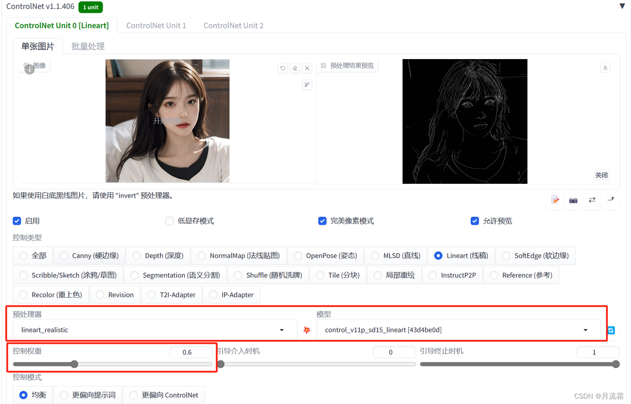为了重绘之后的图片更像原图,可以把控制权重拉满