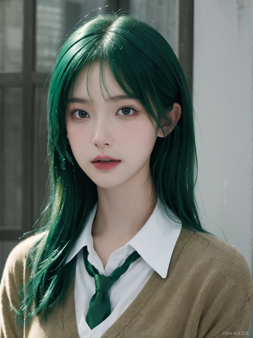 只要在关键词里面输入对应的“绿色头发”就可以了