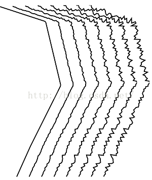 DiscretePathEffect切断线段,segmentLength是指定切断的长度,deviation为切断之后线段的偏移量,随机的,小于等于deviation。