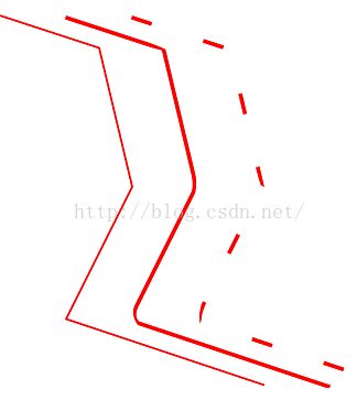 前面已经分析过,当advance大于自定义图形的尺寸时才会出现间隙(这里主要是对MORPH这个style,当style为TRANSLATE时,advance必须大于自定义图形的高时才会出现间隙,这个也很好理解),所以这个就会是一条看不到间隙的path,且有偏移,我们看一下