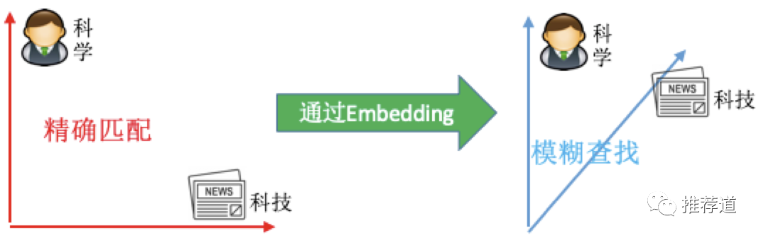 Embedding到底是如何提升“扩展”能力的?简单来说,Embedding将推荐算法从“「精确匹配」”转化为“「模糊查找」”,从而能够“「举一反三」”。
