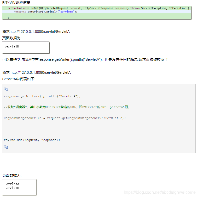 请求转发对ServletA和ServletB的请求方法是相同的,不是GET就是POST,因为请求转发是一个请求