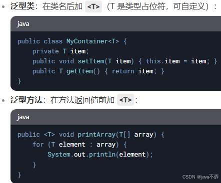 类名后带“<T>”,其中T是类型占位符,可自定义。