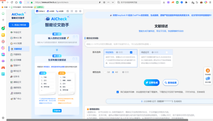 Aicheck 是一款专门为学术研究设计的 AI 工具,其文献综述生成功能支持产出综述报告和综述论文,覆盖大专、本科、硕博及学者等不同学历层次的需求。无论是需要基础梳理的综述报告,还是要求深度分析的综述论文,Aicheck 都能生成符合国内多数院校要求的内容。生成的文献综述包含封面、摘要、研究背景、研究意义、研究现状、评述以及真实的参考文献等完整部分。用户只需上传相关参考文献,系统就会自动整合文献核心观点,按照学术规范梳理国内外研究脉络,大大减轻了研究者手动整理的负担。