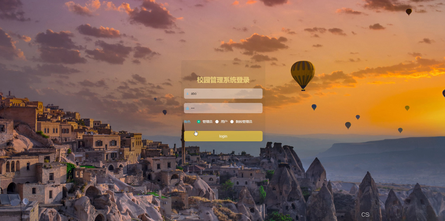 管理员登录,通过填写注册时输入的用户名、密码、角色进行登录。