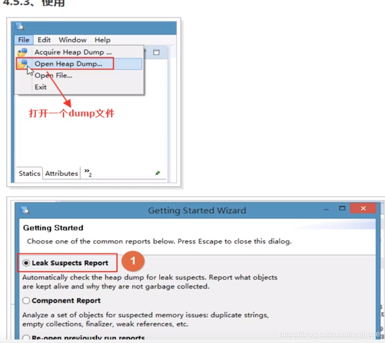 - 打开堆Dump。堆Dump可以用jmap来生成。