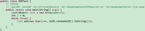 内存溢出在实际的生产环境中经常会遇到,比如,不断的将数据写入到一个集合中,出现了死循环,读取超大的文件等等,都可能会造成内存溢出。如果出现了内存溢出,首先我们需要定位到发生内存溢出的环节,并且进行分析,是正