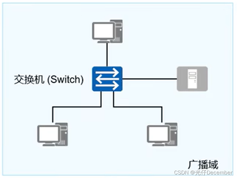 例如我们在办公室的台式机、笔记本、打印机都通过不同的网线接入在了一个交换机上,此时就构成了一个星型网络。如果交换机发生故障,我们的台式机、笔记本、打印机就无法互相通信了。