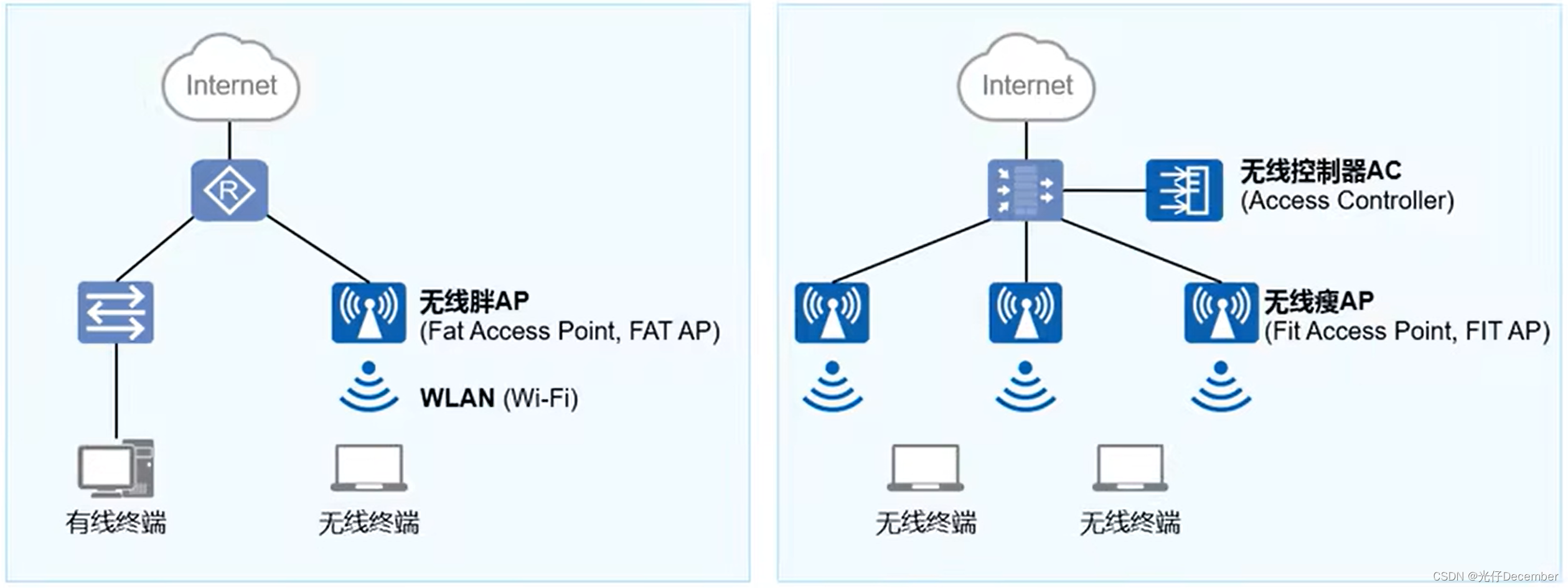 在WLAN,常见的设备有胖AP、瘦AP和无线控制器AC。