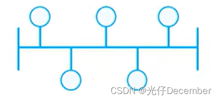 所有节点通过一条总线(如同轴电缆)连接在一起。