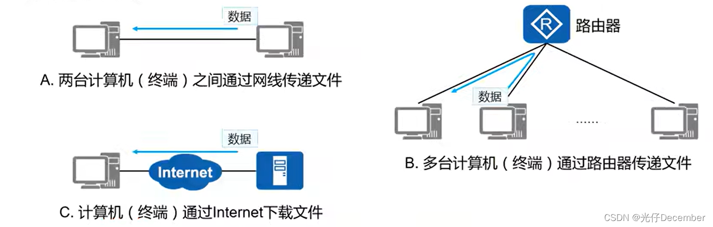 网络通信,是指终端设备之间通过计算机网络进行的通信。