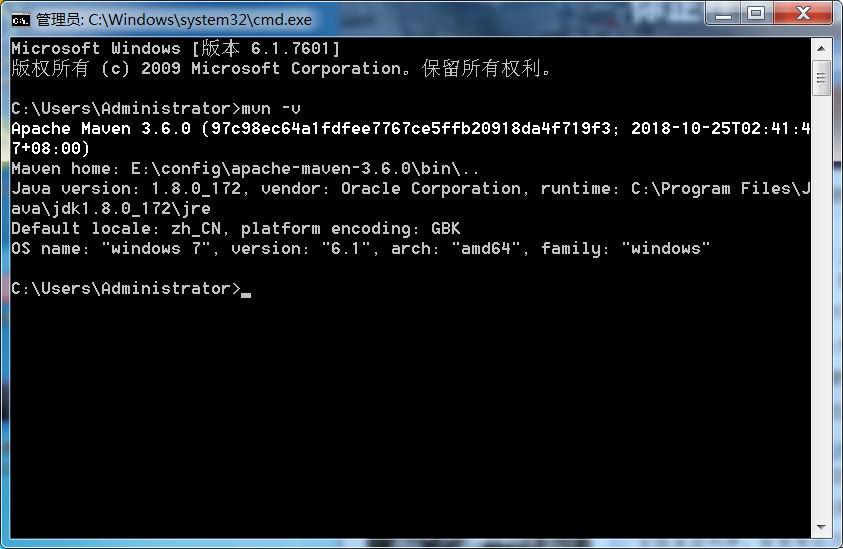 最后检验配置是否成功:用win键+R,来打开命令行提示符窗口,即Dos界面,输入mvn --version 若出现以下情况说明配置成功
