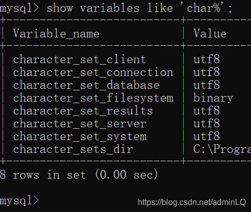 最后才考虑到可能是Navicat版本和mysql版本不一致,于是下载Navicat12,安装完后连接数据库(此时就没有报Unknown character set: 'utf8mb4的错误)插入中文数据,在命令行重新查询,成功显示中文(查询之前记住要把character_set_results的编码改为gbk)。