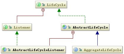 整个 Jetty 的所有组件的生命周期管理是基于观察者模板设计,它和 Tomcat 的管理是类似的。下面是 LifeCycle 的类关系图