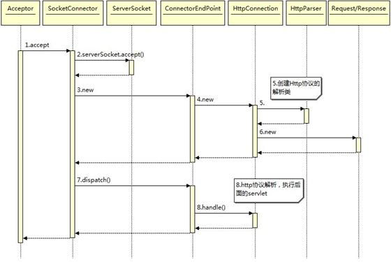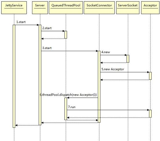 下图是 Jetty 启动创建建立连接的时序图: