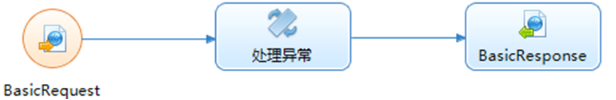 样例为在子流程中处理异常,在ESB流程执行时可以不将获得的异常抛出,而是作为反馈提示信息的方式处理。这样可以方便系统维护人员的维护,保证流程的正确运行而不是流程直接崩溃。